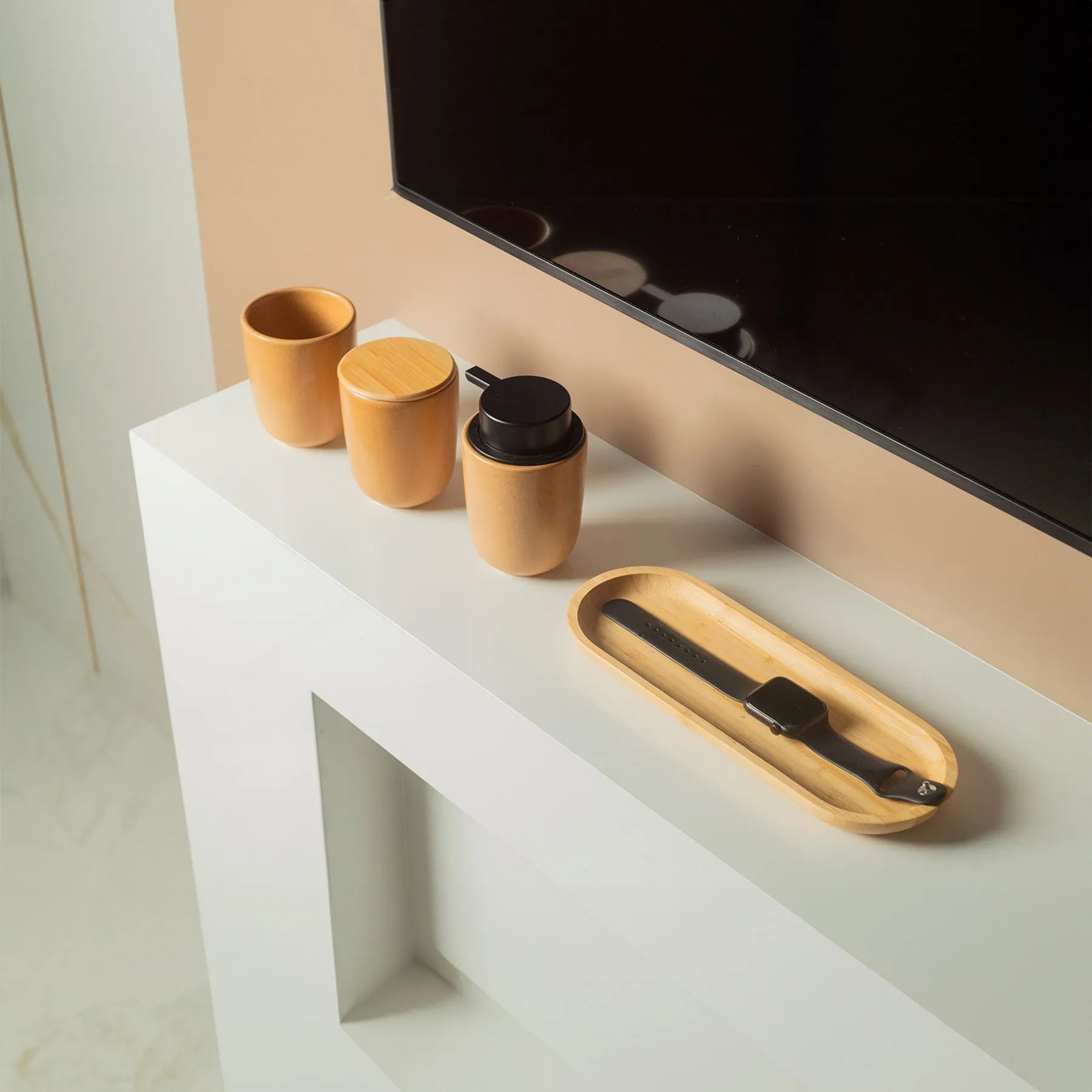 A BANDEJA BAMBOO é perfeita para organizar pequenos itens no banheiro ou cozinha.
