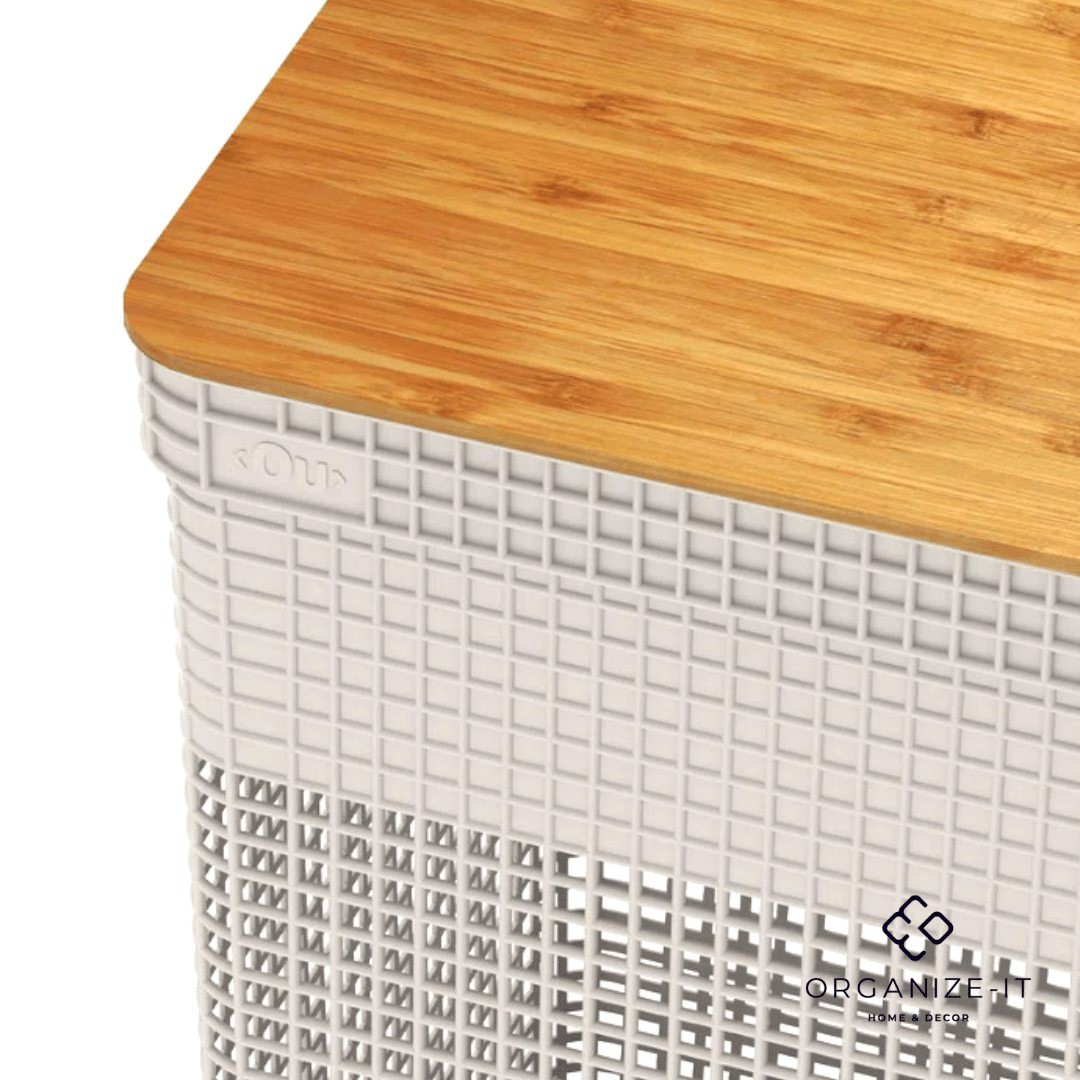A linha de Cestos Grid foi desenvolvida com um mix perfeito entre conforto, design e funcionalidade. Os cestos possuem diversos tamanhos, são empilháveis e versáteis.São diversas opções com cores neutras e acabamento fosco, que combinam com qualquer ambiente. Podem ser utilizados em closets, cozinhas, lavanderias ou até mesmo na sala de estar para decorar. O Cesto De Roupas Grid Com Tampa De Bambu 49 Litros possui medidas de (39cm-profundidade x 29cm-largura x 55,6cm-altura) e a capacidade de 49 litros. Além de possuir tampa em bambu que traz um toque a mais de sofisticação e elegância para qualquer ambiente da sua casa.