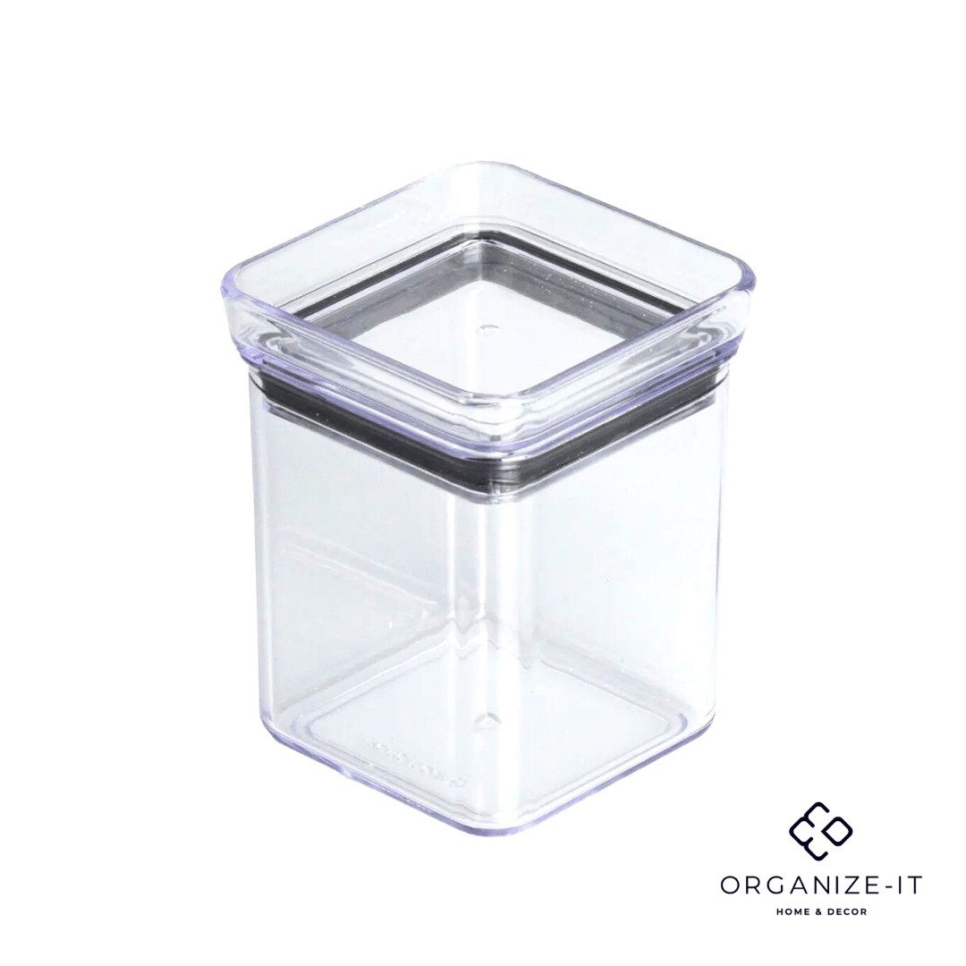 É empilhável e perfeito para armazenar temperos, na bancada ou armário, otimizando espaço.
