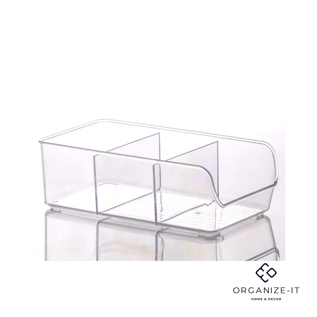 O Organizador Diamond Cristal com Divisórias é muito útil e pode ser usado para você organizar diversos produtos em diferentes ambientes da sua casa. Esse produto inclui 3 divisórias que irão te auxiliar a separar cada item. Além de tudo é bonito, discreto.