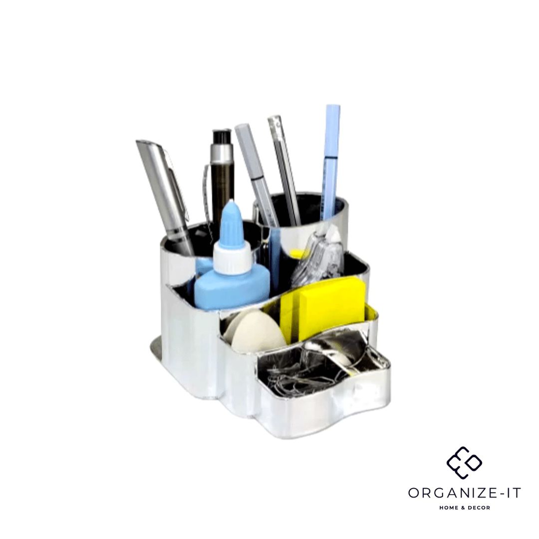 Porta Canetas Metalizado Prata, indispensável em sua mesa de trabalho, hobby ou home office. Além de contribuir com uma decoração moderna e funcional.